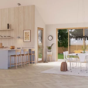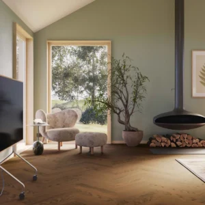 Områder på hoteller, kontorer, i butikker eller boliger hvor man ønsker en rolig stemning. De ekstra store gulvbordene i Natural-nyansen er kombinert med Select-sorteringen for å skape et rolig, naturlig utgangspunkt for et naturinspirert interiør.